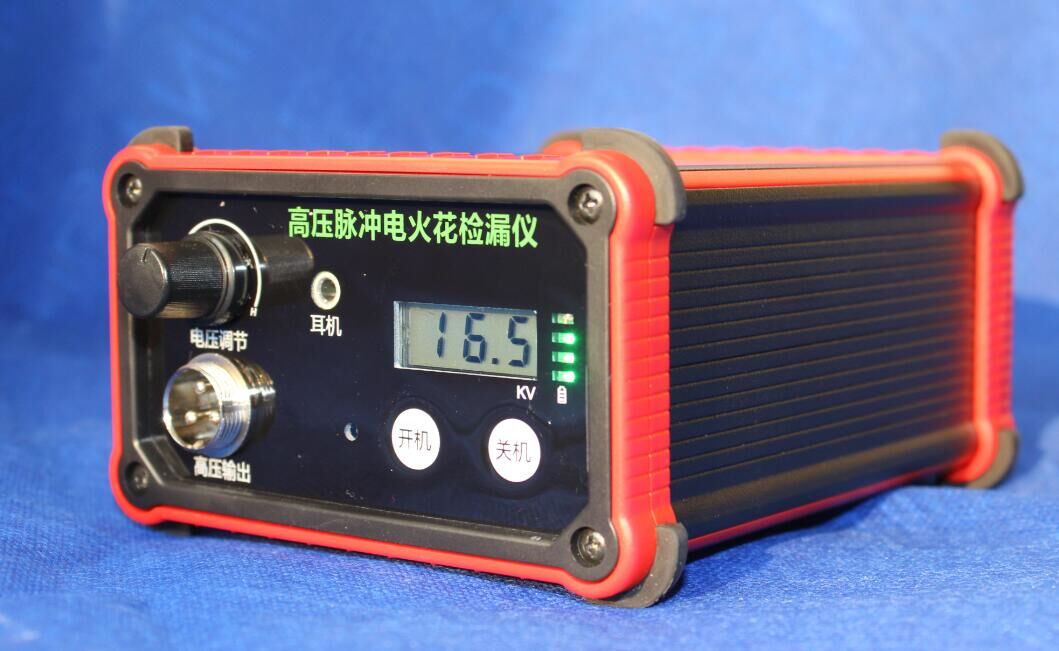 电火花检测仪检测原理及方法:金属表面绝缘防腐层过薄、漏铁及漏电微孔处的电阻值和气隙密度都很小,当有高压经过时就形成气隙击穿而产生火花放电,给报警电路产生一个脉冲信号,报警器发出声光报警,根据这一原理达到防腐层检漏目的。
